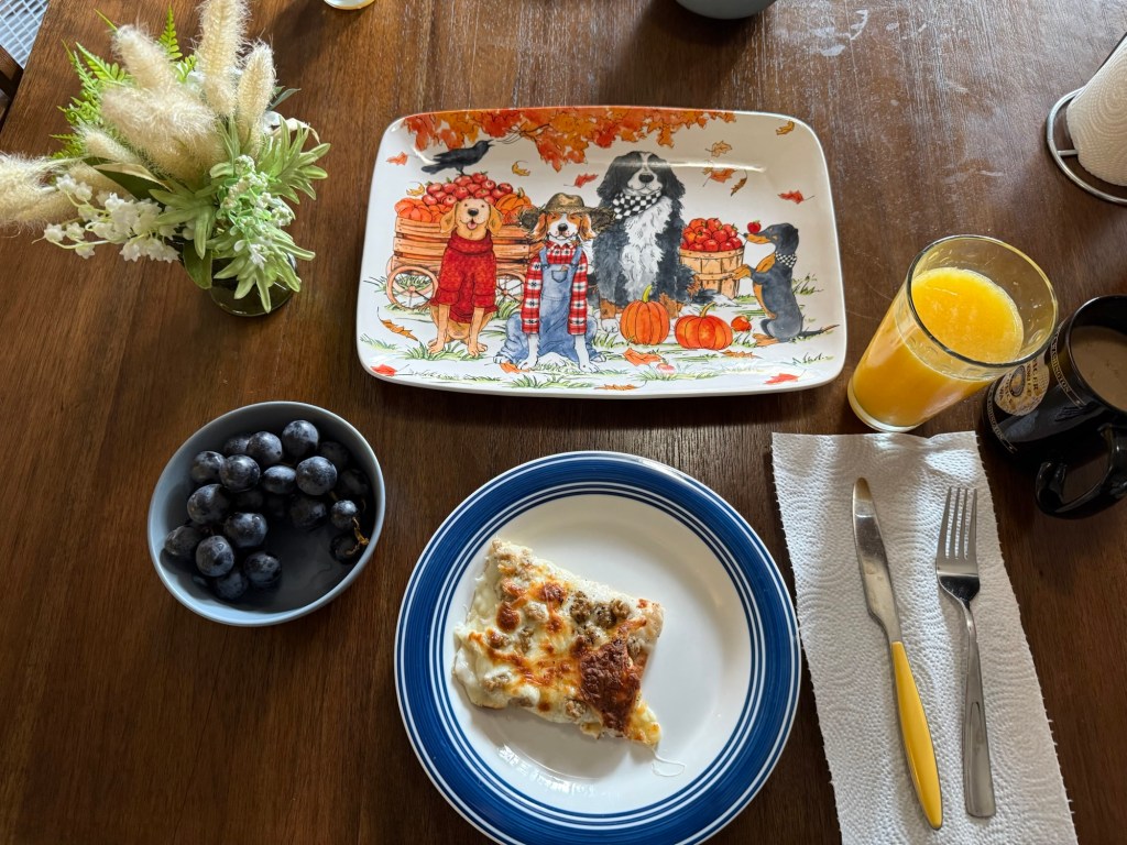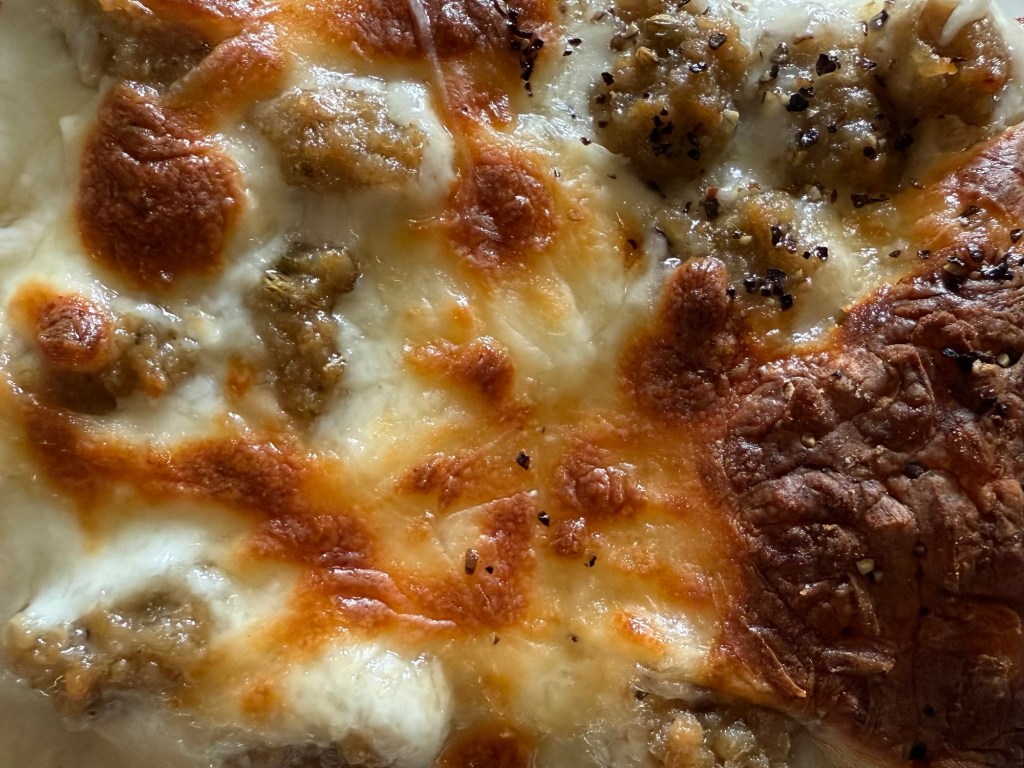 She worked in the school cafeteria when I was growing up, and this was one of the dishes she made most often. Only, she wasn’t making a single pan, she was preparing trays and trays, enough to feed hundreds of kids before the first bell. I can still picture her moving through that space with quiet purpose: sliding trays into ovens, slicing pizzas, lining up plates for the kids. At the time, I didn’t fully notice it. It was just breakfast. But now I see it differently.