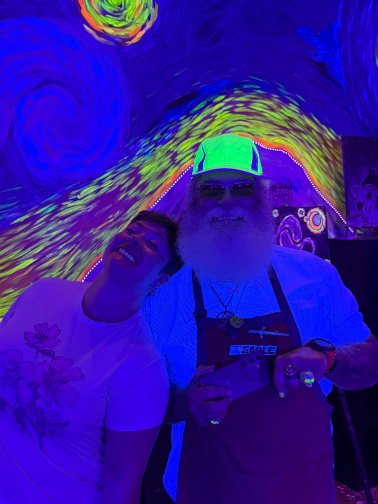 Tonight my dad and I went to Pinot’s Palette for a blacklight paint and sip. The room glowed with neon colors and under the black lights our paintings slowly came alive with a spooky kind of magic.